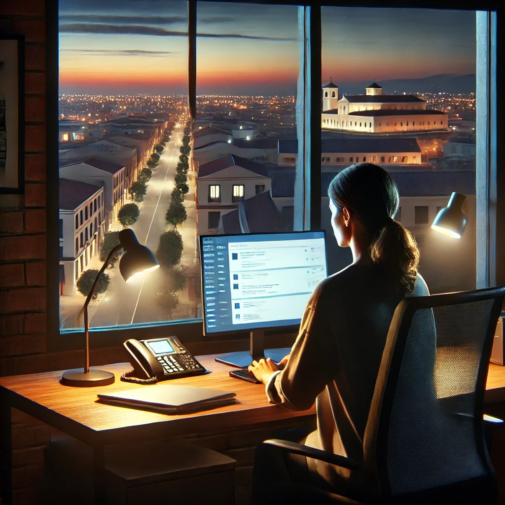 El sol se escondía lentamente tras las montañas cuando Ana llegó al pequeño pueblo de Roca fría. La combinación de estructuras tradicionales europeas con modernos edificios le daba al lugar un aire único y extraño. Ana, cargando sus maletas, se dirigió hacia la oficina donde comenzaría su nuevo trabajo como telefonista. El trabajo parecía sencillo y bien pagado, justo lo que necesitaba para ahorrar dinero y visitar a su familia en su ciudad natal.