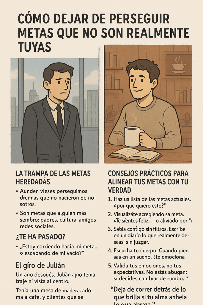 Desde pequeño le dijeron que debía ser exitoso. Y para su familia, “éxito” era traje, corbata y una agenda llena. Así que Julián corrió. Se tituló, ascendió, compró, mostró. Hasta que un martes cualquiera, después de una junta interminable sobre algo que no le importaba, se encerró en el baño y se miró al espejo. “¿Para quién estoy viviendo?”