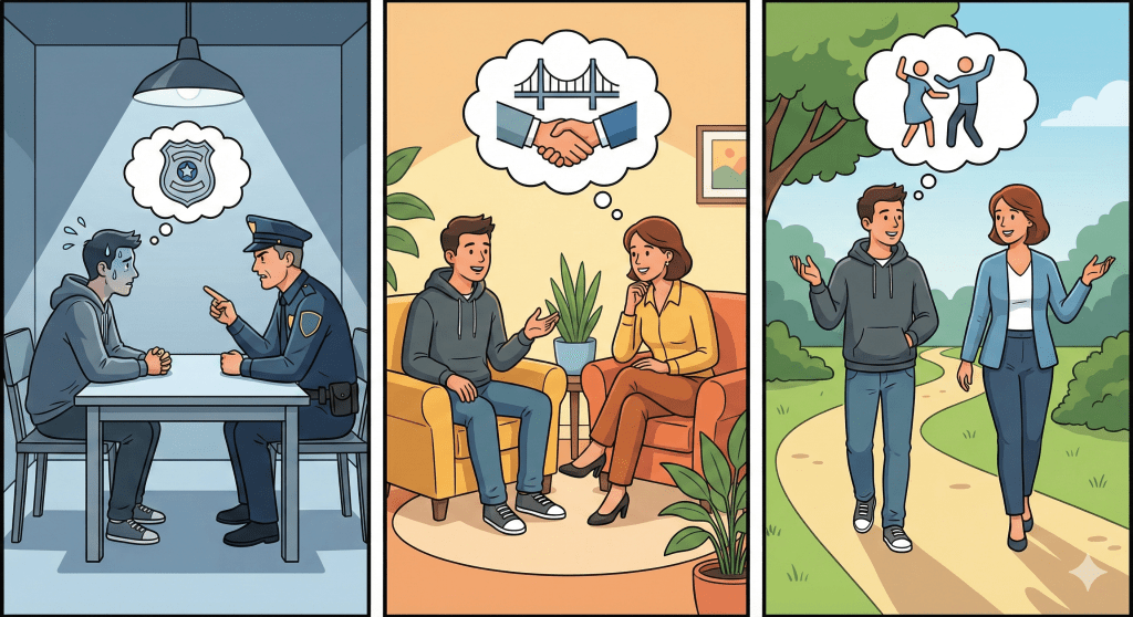 En un interrogatorio policial, lo que importa son los hechos puros y duros. En una entrevista clínica, cómo cuentas los hechos es tan importante como los hechos mismos. Un terapeuta entrenado no solo escucha tu historia; está «escuchando» con los ojos.
