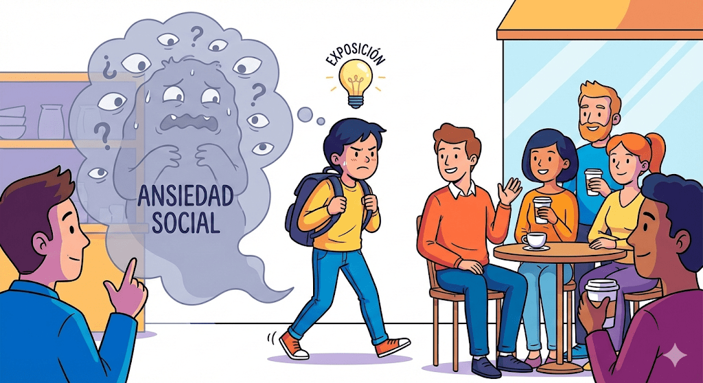La premisa de la fobia social es que el mundo es un tribunal implacable y tú eres el acusado perpetuo. La terapia de exposición propone algo radicalmente distinto: la única forma de demostrarle a tu cerebro que no estás en peligro de muerte por tartamudear al pedir un café, es haciéndolo y sobreviviendo para contarlo. Básicamente, es entrenar a tu cerebro para que deje de comportarse como una alarma de incendios defectuosa que se dispara cada vez que alguien te saluda.