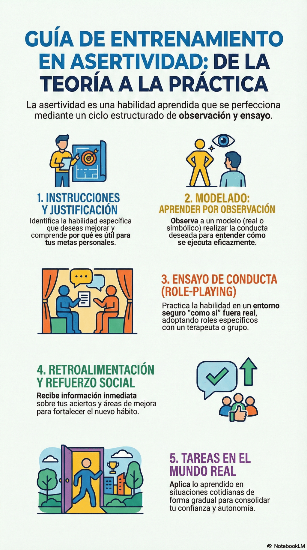 - Preparación Racional: Antes de hablar, recuerda que tienes derecho a pedir lo que quieres o a decir «no», y que si la otra persona se molesta, es algo que puedes soportar (Alta Tolerancia a la Frustración).