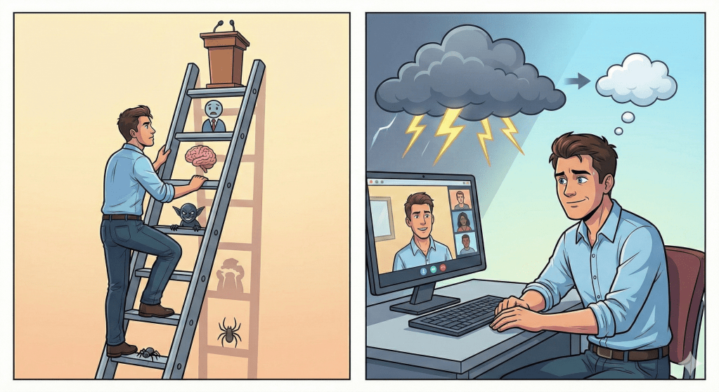 Aquí es donde la intuición nos falla. Supongamos que decides enfrentar tu miedo (digamos, estar en una reunión de Zoom con la cámara encendida). Lo haces, sientes que el corazón se te sale por la boca, aguantas 2 minutos y dices: «¡Listo! ¡Lo hice! ¡Soy valiente!», y apagas la cámara.