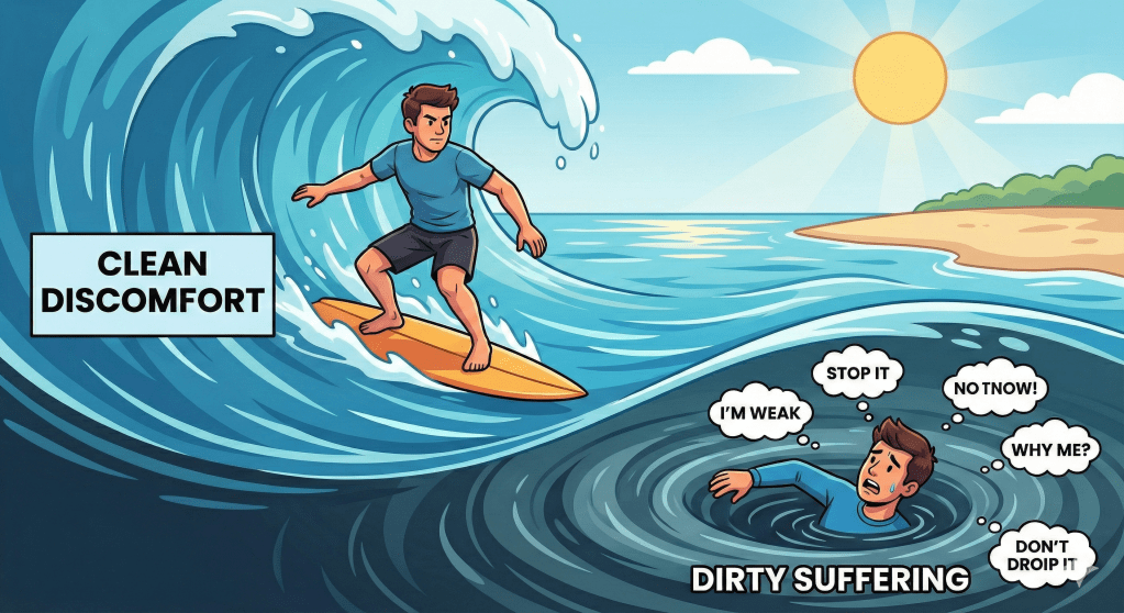 Es crucial distinguir entre la incomodidad limpia y el sufrimiento sucio (un concepto muy usado en la Terapia de Aceptación y Compromiso).