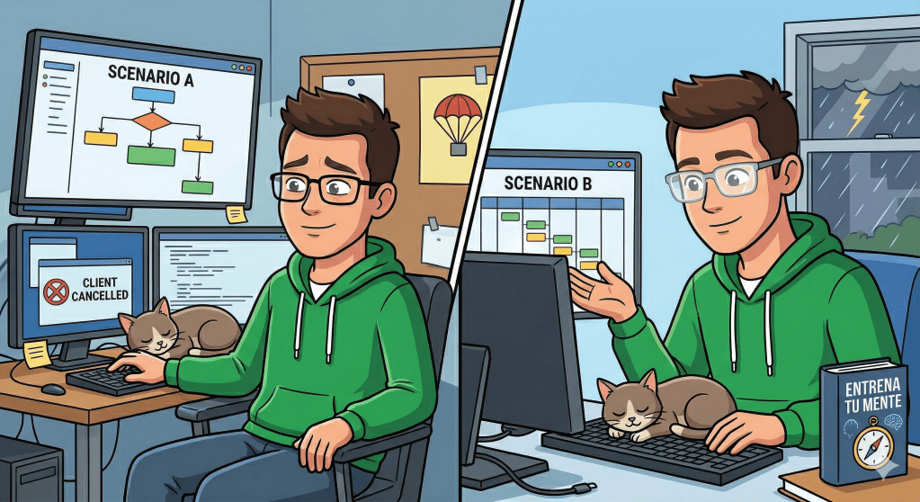 Si trabajas en línea, sabes que la incertidumbre es tu compañera de escritorio. Clientes que desaparecen, algoritmos que cambian, IA que parece que nos va a quitar el puesto el próximo martes. El pensamiento positivo te diría: «¡Todo saldrá bien!». La TCC te dice: «Vivimos en un mundo de probabilidades, no de certezas».